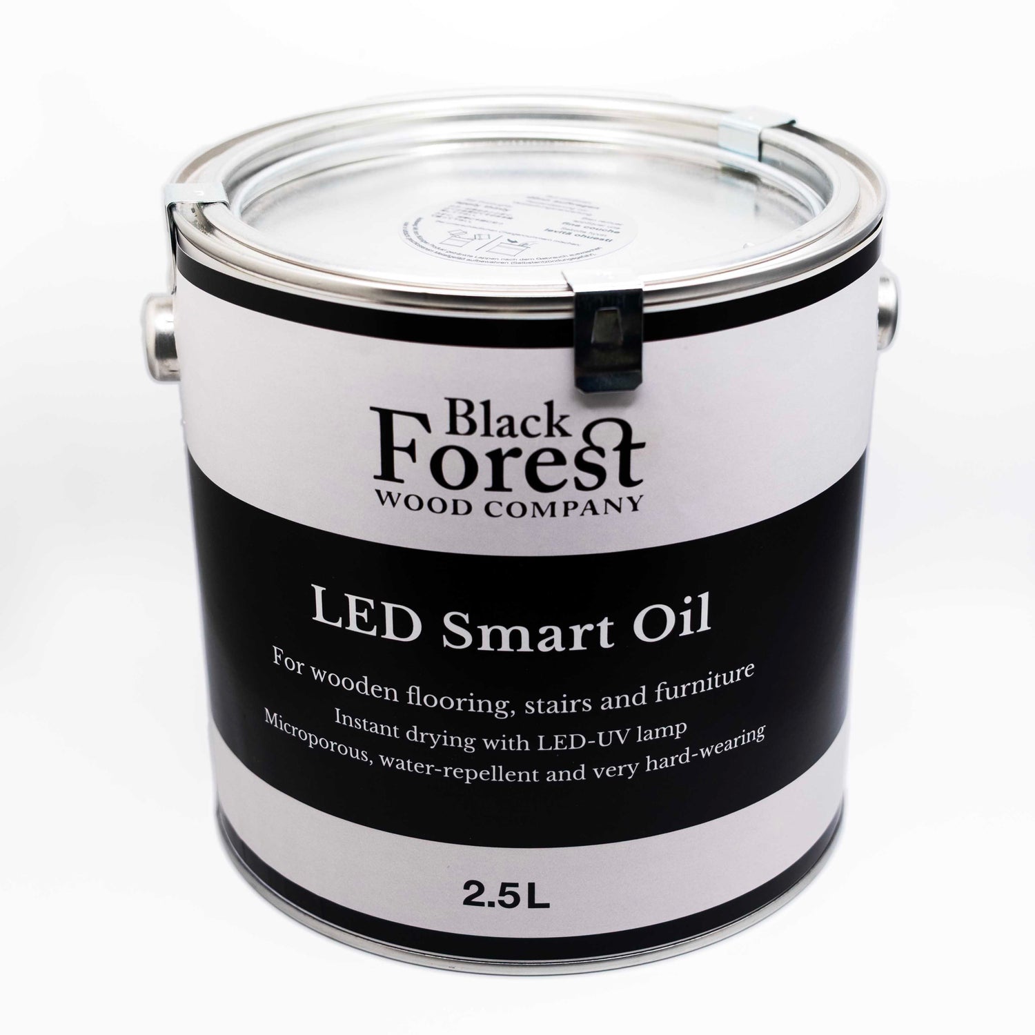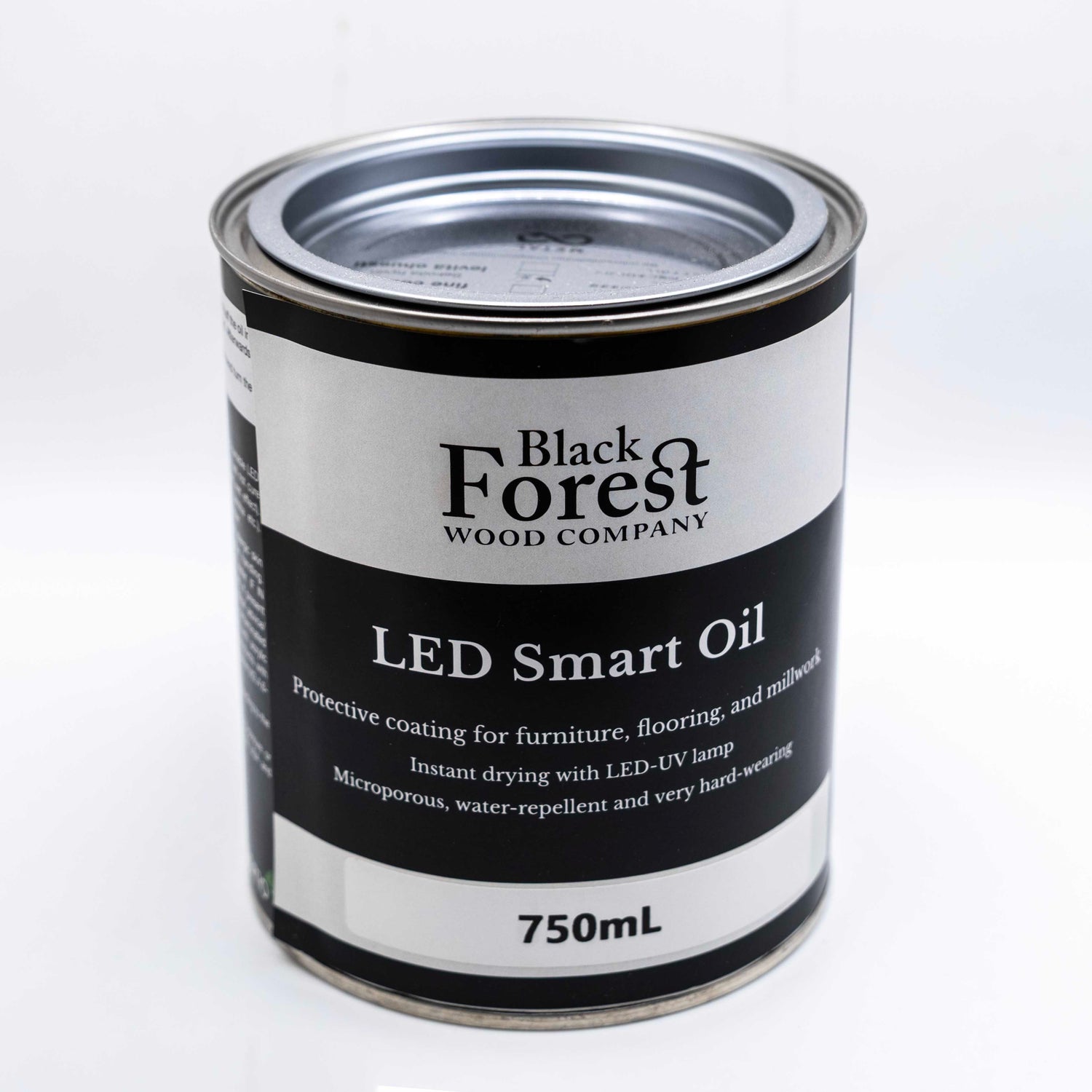 Our Black Forest LED Smart Oil features the latest technologies available in wood-finishing. This unique blend of oils and photo-activators instantly cures and hardens when exposed to a LED-UV light.