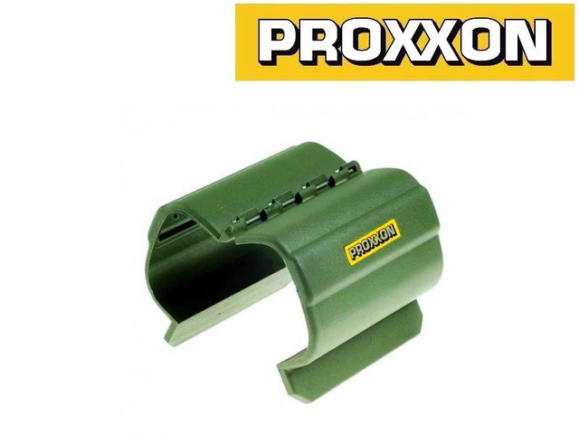 Plastic mounting bracket for attaching Proxxon Micromot series machines to a vise. Plain mounting piece only.